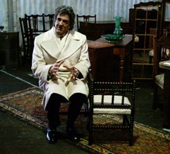 6/14/2004My Way of LifeI'm having an underwater kind of day. This is when you see the images going on around you, but feel a bit disconnected everything. Everything sounds a bit muffled. I'm sure this is due to several factors. I'm always a bit tired after four shows in a row. Joan takes a lot out of you, as she should. After last nights show we had cast members over to celebrate my...Birthday. It's just weird for me to be starting my mid 40's, particularly when I look so incredibly youthful and vital.It's been a strange past few days. I attended the wake of my 30 year old cousin, Brian. A brilliant, sweet guy who just couldn't conquer whatever demons haunted him. He was found dead in his apartment Tuesday. He OD'd on heroin the Friday before that. The day of his birthday. The next day I found myself at my sisters college graduation party. This was not just any graduation party. This was the result of 12 years of perserverance and 5 KIDS inbetween, who I spent most of my time with singing 'Old McDonald' while we sailed along the big backyard swing. Ethan, the four year old, kept trying to get us to sing 'poop' as one of Old MacDonald's animals. I played dumb, telling him I didn't know what kind of noise poop made. Baby Jane has been really fun. We've gotten into our groove and the audiences are coming despite some less then enthusiastic reviews. Friday's house included a large group from Chris's company and they roared. It had to be more our most enthusiastic audience yet. What a rush that was..., Saturdays house was even larger, and by the time Sunday came around we were all a bit tired and goofy. We actually had people from NYC who had seen POSEIDON! at the Fringe. They were visiting friends in Chicago and saw we had a show running. They loved the show. Sunday night we had the Baby Jane cast over for burgers and beers (and soda). I received some lovely gifts, including the SCTV first season boxed set which I didn't even know was out. I immediately watched the Lola Heatherton 'Bouncin' Back to You' episode played by the genius known as Catherine O'Hara, which is one of my all time favorites. I also received a vintage School film video from Miss Hillary and a framed photo collage of How Whatever to Baby Jane Happened stills from Mike Miller, along with cards and hugs. Not bad for an old broad from Hammond, Indiana. posted by David on 6/14/2004 05:01:00 PM | Link |